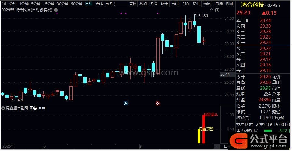 【极致尾选】尾盘选股公式 95%胜率尾盘阴线策略 手机电脑通用指标