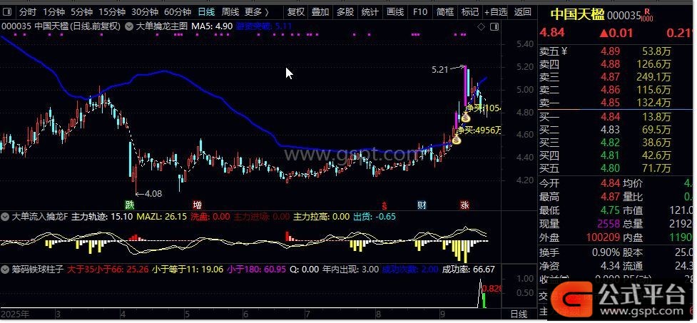 洗盘:IF(主力跟踪5>REF(主力跟踪5,1),主力跟踪5,0),COLORRED,NODRAW;