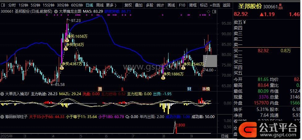 出货:IF(主力跟踪51>REF(主力跟踪51,1),主力跟踪51,0),COLORCYAN,NODRAW;
