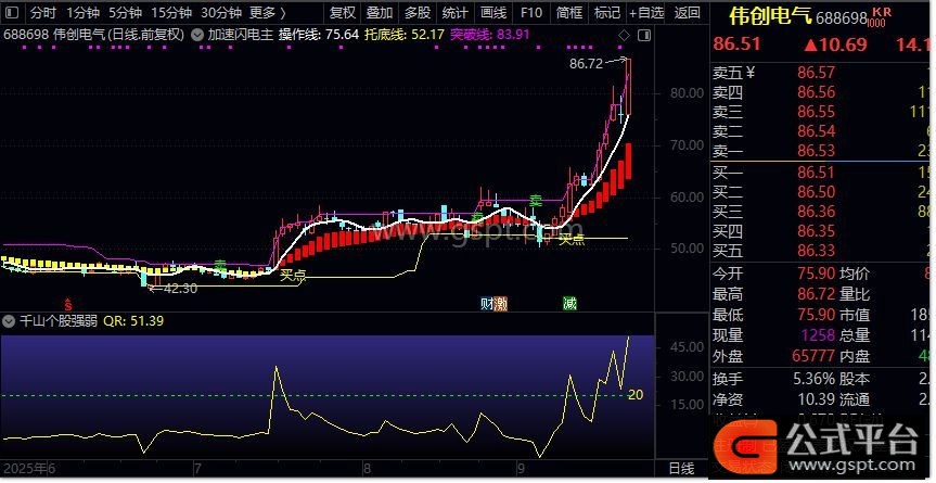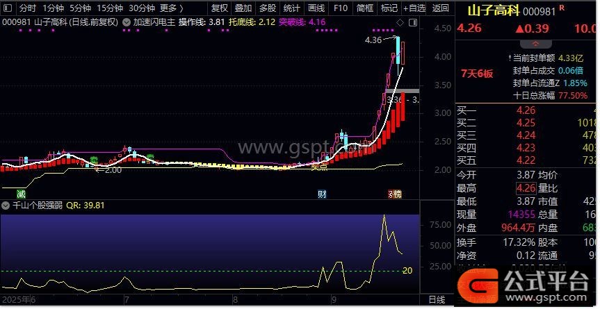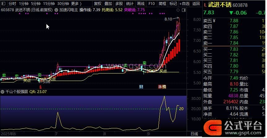gspt10:=SMA(MAX(CLOSE-gspt9,0),6,1)/SMA(ABS(CLOSE-gspt9),6,1)*100;