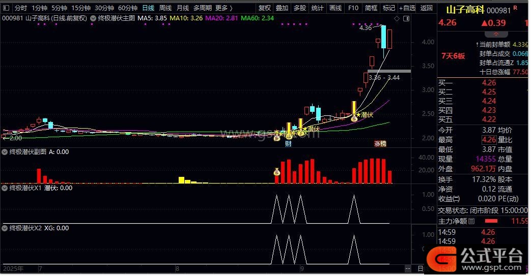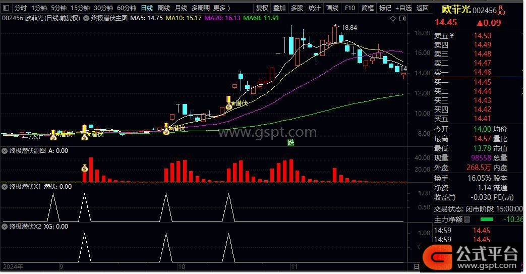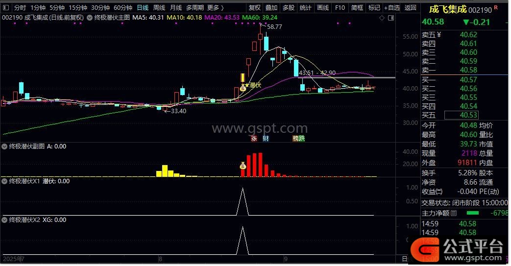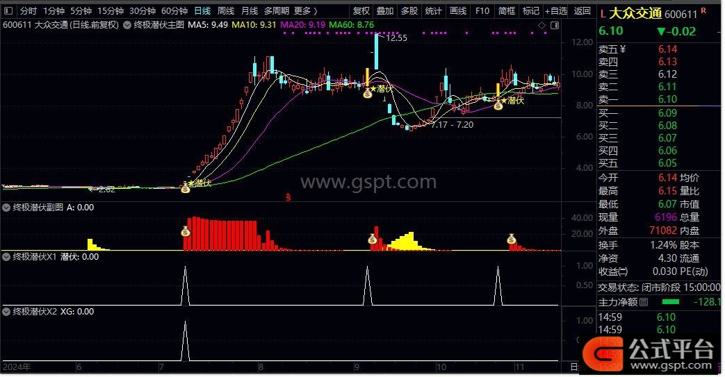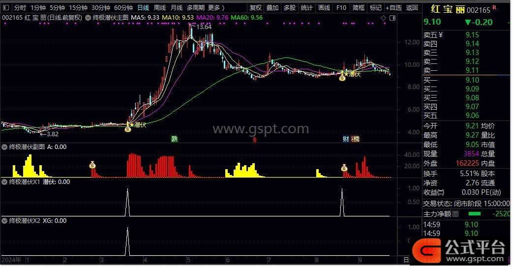 1. 信号确认:主图出现"★潜伏"图标且副图黄色柱状线同步放大时,视为有效买入信号。