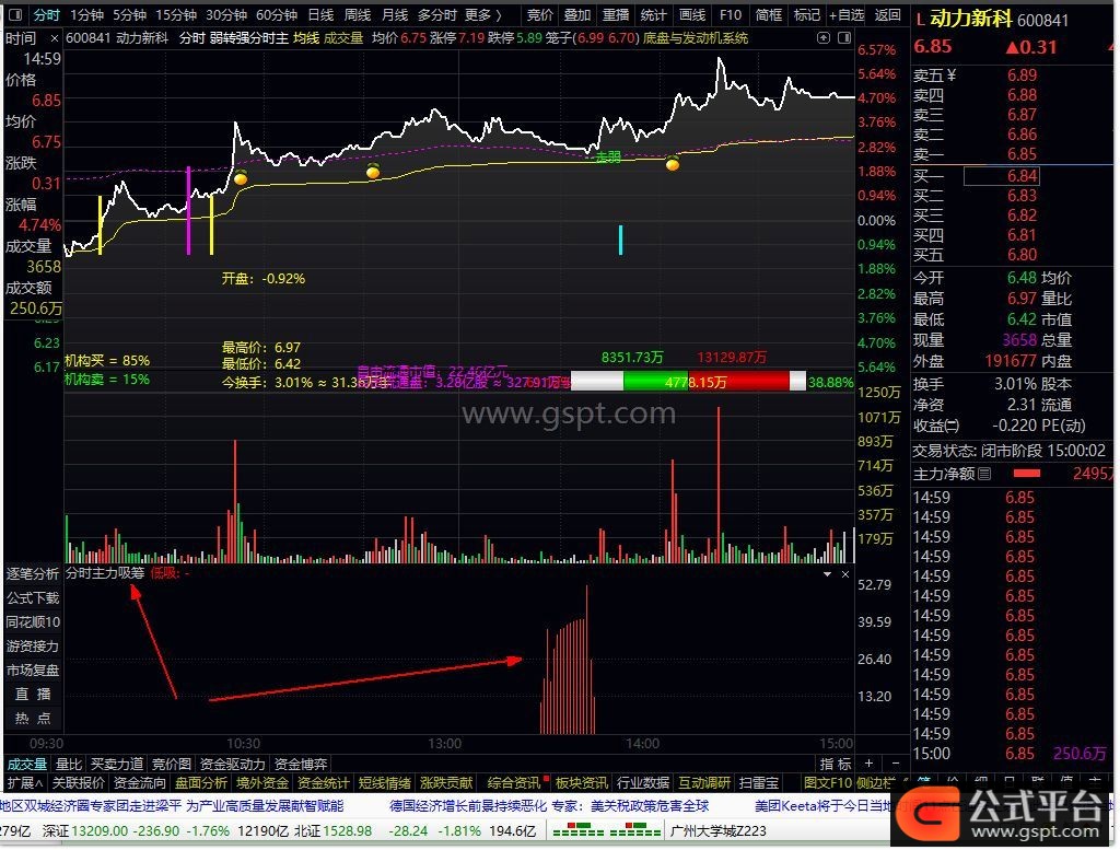 此分时主力吸筹指标经过优化,能更精准识别主力资金动向,有效减少错误信号干扰,特别适合短线交易者使用。它通过分析分时图价格与成交量变化,辅助判断主力吸筹行为,极端行情下建议结合其他指标综合研判。