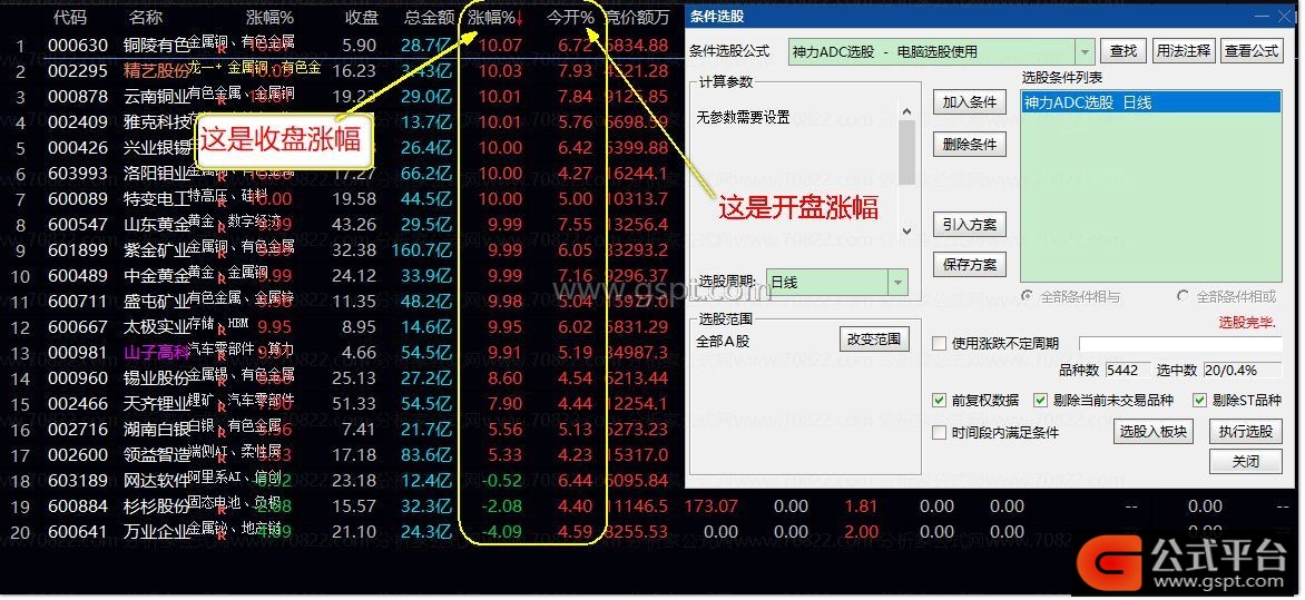 电脑排序:(手机没有排序功能,只能选股选出 神力ADC>0)