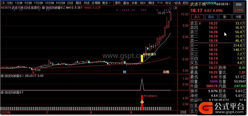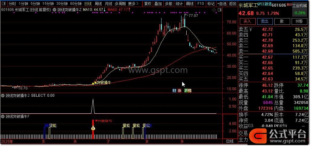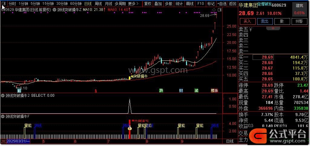 【颈线突破擒牛】主副图+选股指标 量能偏离与条件颈线突破双重验证触发选股信号