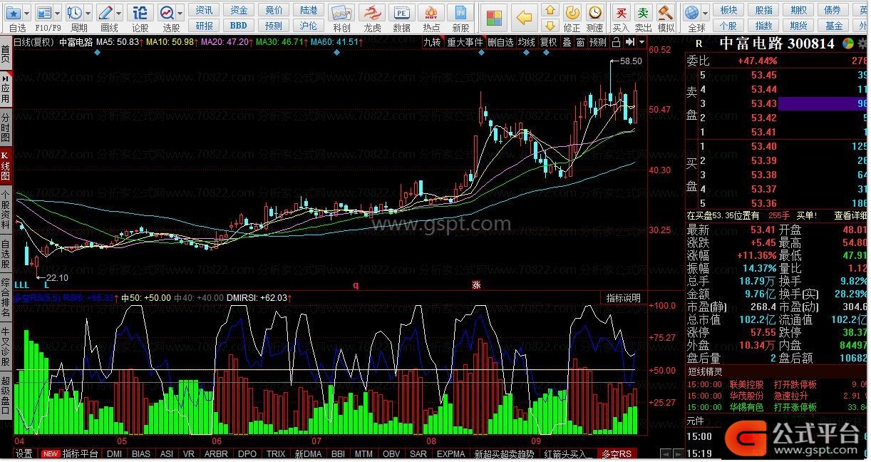 DMIRSI : DMP / (DMP + DMM) * 100,colorwhite;
