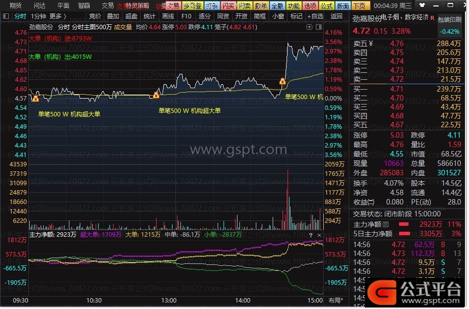 这款分时主图指标所蕴含的500W机构超大单逻辑,为短线投资者提供了比传统L2数据更为直观且易用的分析工具,堪称短线操作中的神器。