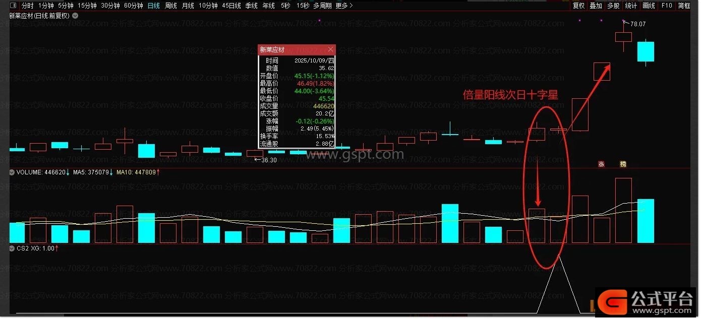倍量阳线之后,次日是缩量十字星,选出来以后,结合基本面逻辑方向,以倍阳的实体中间为止损位,破位止损,不破持有。