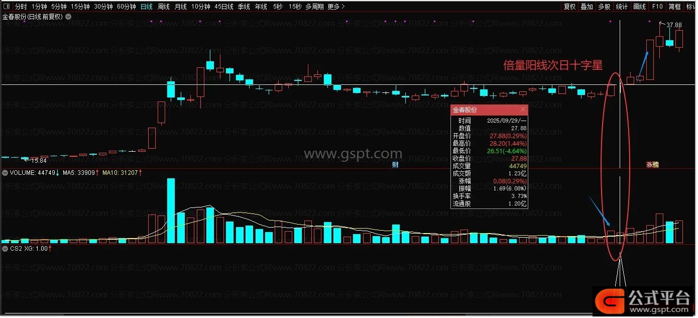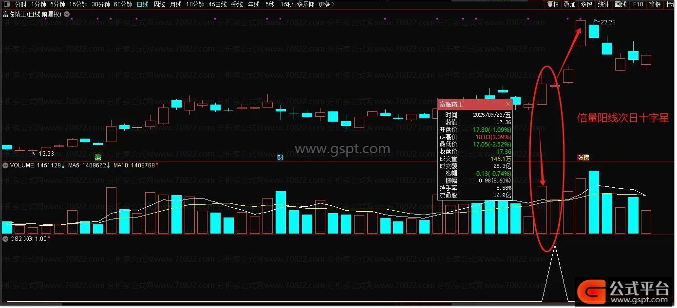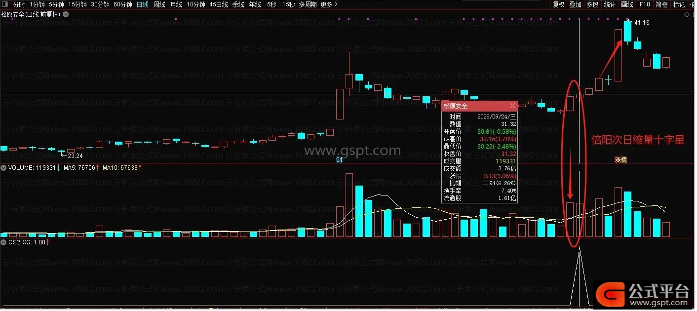 主力新手法揭秘:倍阳次日【缩量齐肩】指标,精准捕捉创业板20cm拉升信号创业板20cm个股中常见倍阳次日缩量齐肩形态,此指标通过量化四例典型股票验证有效性。该形态特征为:倍量阳线后次日收出缩量十字星,形成“齐肩”结构。结合基本面逻辑筛选后,以倍阳实体中位作为止损参考——价格跌破则离场,未跌破则持有待涨。