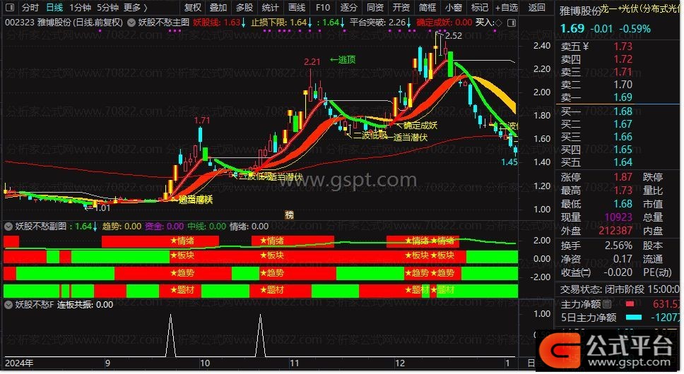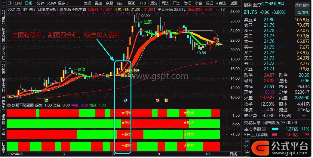 通过情绪+板块+趋势+题材四维共振,这类信号较多,配合主图信号,出票信号适中几乎每个行情都能捕捉到大妖股。