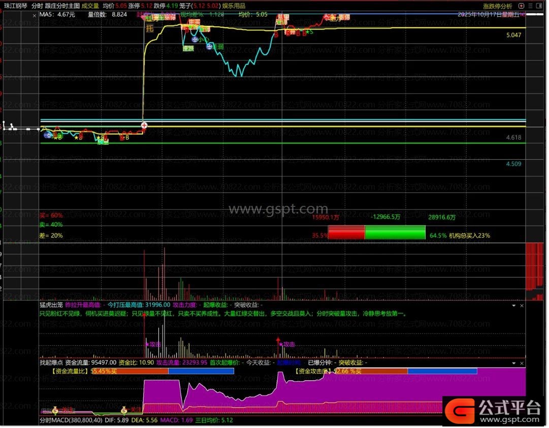 高级打板〖紫紫红黄打板〗副图指标,动能、资金、控盘、起爆全方位综合游资指标