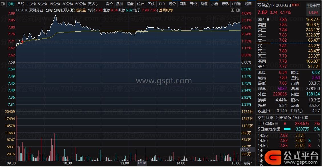 主力线:=gspt02+gspt03*0.5/9,COLORGREEN,DOTLINE;