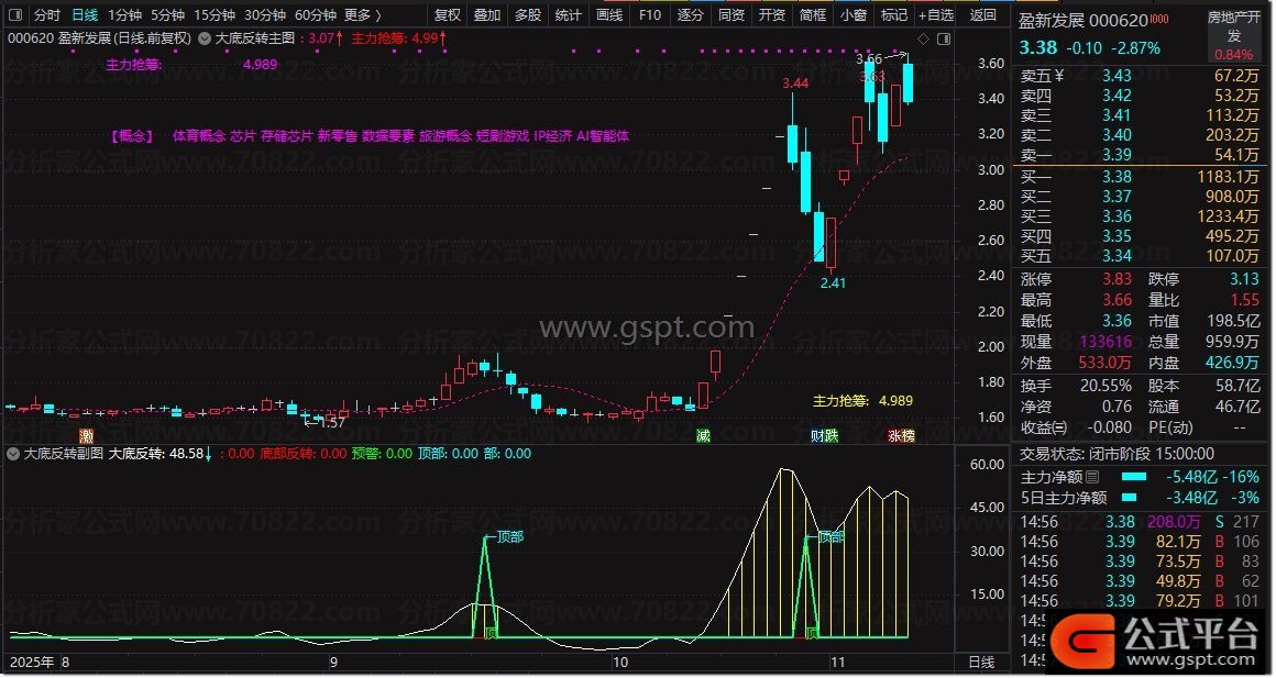主力抢筹:gspt1/REF(V,1)*100,COLORRED,NODRAW;