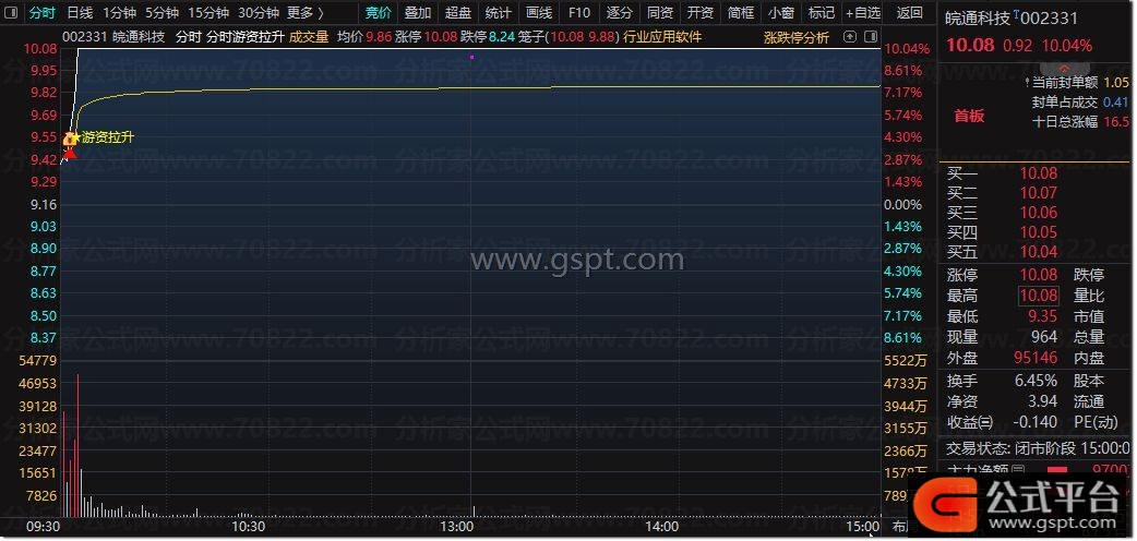游资买盘A:=SUM(IF(C>REF(C,1),V,0),FROMOPEN),COLOR0000FF,LINETHICK0;