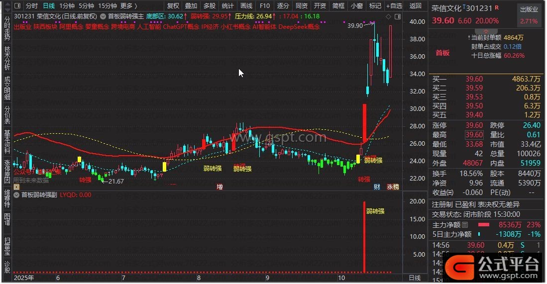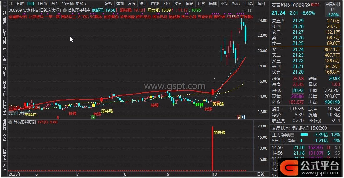 DRAWTEXT(走强,LOW-0.085*LOW,'弱转强'),COLORYELLOW;
