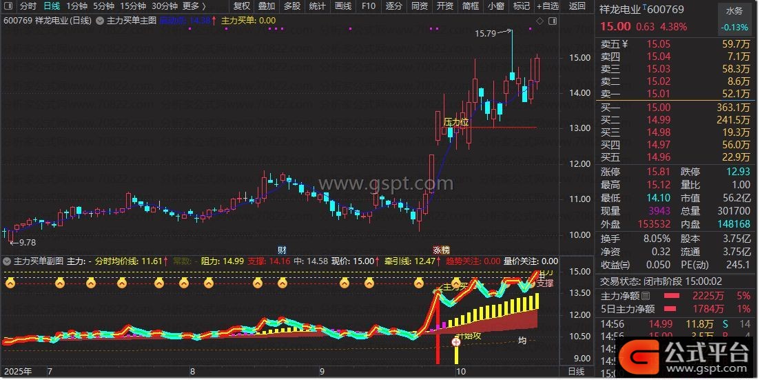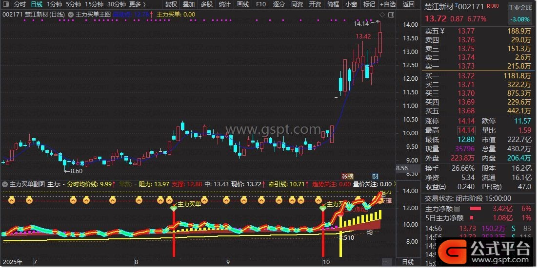 3. 共振确认后,副图出现的主力加速信号表明股价即将开始加速上涨。