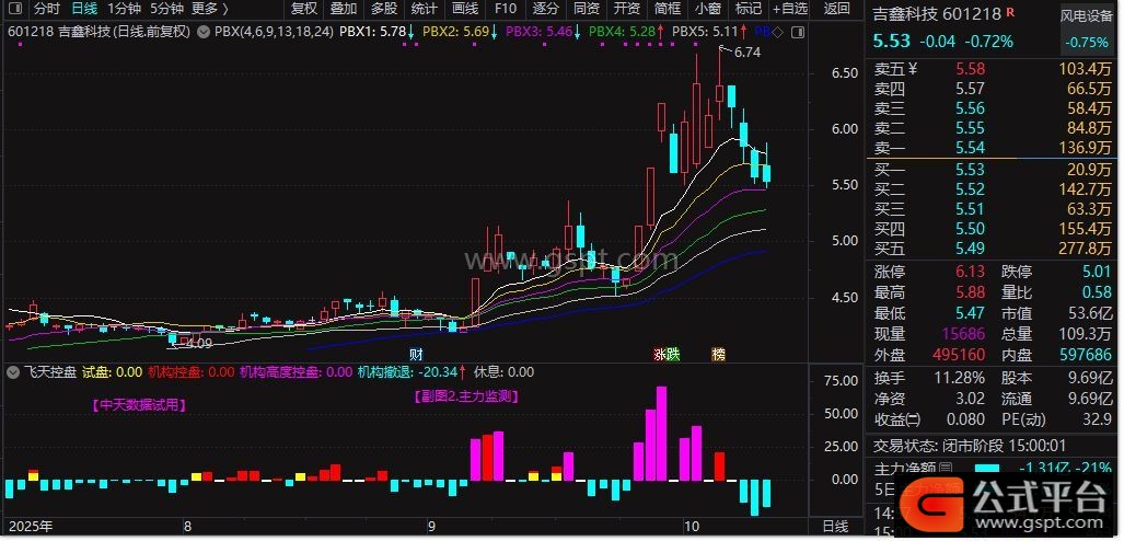 飞天控盘指标是一款专业用于监测主力资金动向的通达信副图技术指标,它通过智能分析价格与成交量关系,直观展示机构控盘状态,为投资者提供清晰的买卖参考信号。