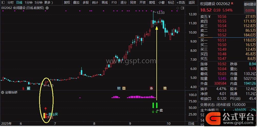 4、选出票后,当日没能买进,则次日在开盘后5分钟内,逢低买入,因为此股已进入主升浪,哪天都是买点,所以买进要果断。