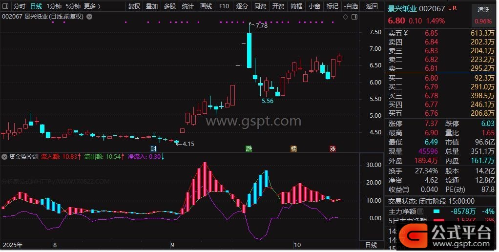 今天分享一款不含未来函数的“资金监控副图指标”。该指标专门监控股票资金流向,故称“资金监控”。主力操作可隐藏,但资金动向难造假,通过这一资金监控指标,主力动向清晰可辨。以下是具体使用方法: