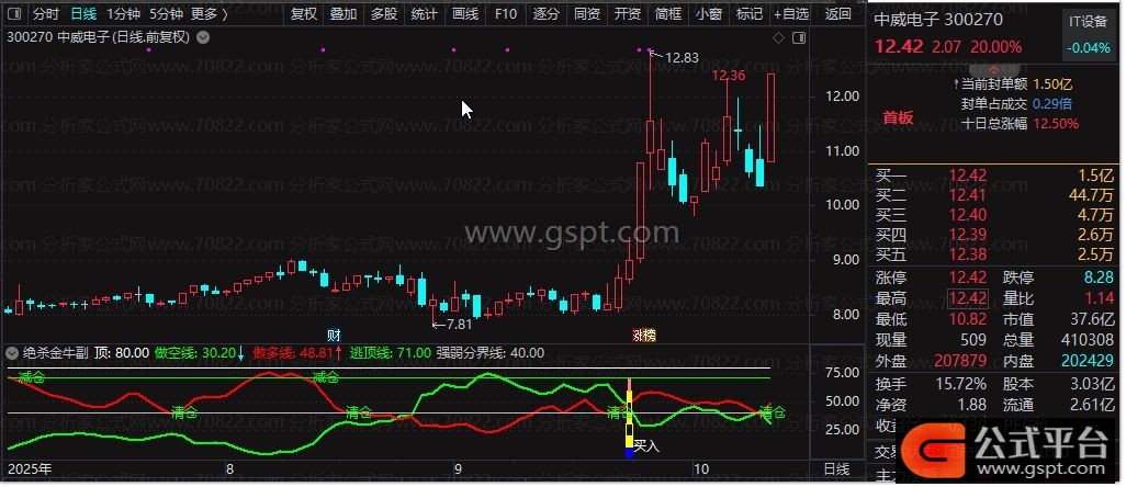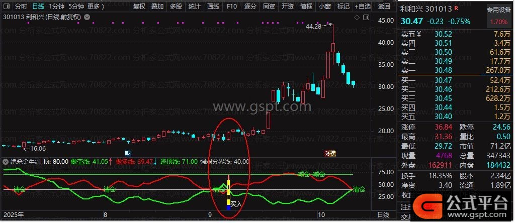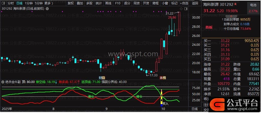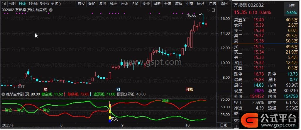今天分享的“绝杀金牛”副图指标,包含选股公式,指标不含未来函数。该指标主要用于抄底策略。实际运用时,需结合板块分析以提升收益空间。指标信号验证性强,买入时机明确。但要实现超高成功率,不能仅依赖指标信号。投资者应综合考量基本面、均线系统、板块热度及个股位置,作为买卖决策依据。精选优质个股比频繁追涨杀跌更易获得稳健回报。公式平台,公式源码 http://www.gspt.com 以下为指标使用方法详解: