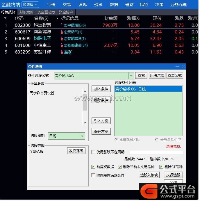 ②交易日上午9:25至9:30期间,可使用Ctrl+T进行选股,配合.401排序功能灵活操作。用户可根据自身使用习惯,灵活运用这些竞价选股技巧