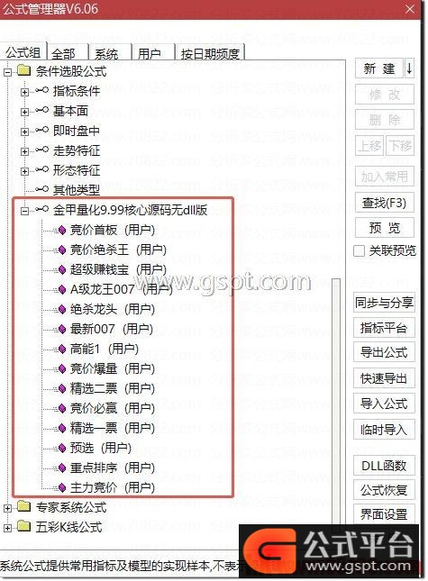 金甲量化系统的公式,感谢股友给的解密。结合自己的一些不成熟经验,过滤掉一字板。