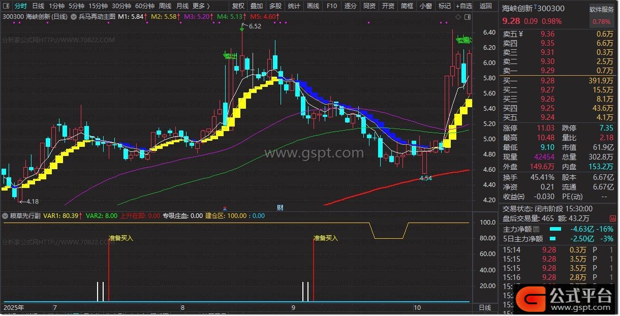 DRAWTEXT(gspt6,HIGH*1.02,'卖出'),COLORGREEN;