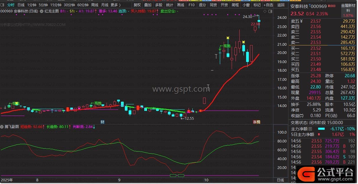 红龙腾飞套系指标包含主图、副图与选股指标,无未来函数。经过大量个股对比分析,结合自主信号提示,使指标信号更为明确。红龙腾飞指标不仅能捕捉股价上涨初期信号,还包括强势股调整后再起信号,以及高位见顶回落信号。运用此法,捕捉妖股成为常态。操作中需严守止损原则,一旦形态走坏应及时离场。买入宜分批进行,形态完好可逐步加仓,形态破坏则果断止损。按此方法,亦有擒获连续涨停股的机会,具体实战需不断总结。