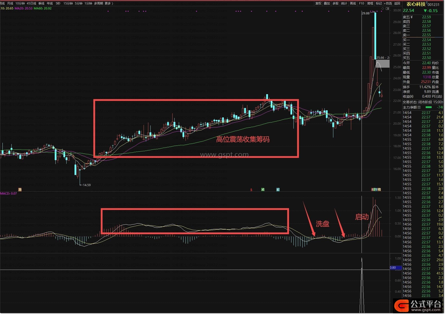 介绍高位震荡吸筹模式,这种模式常见于行情好时,主力高位吸筹容易,因高位换手活跃收集筹码轻松;