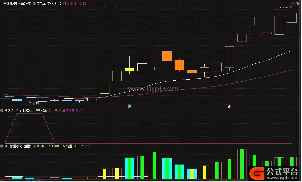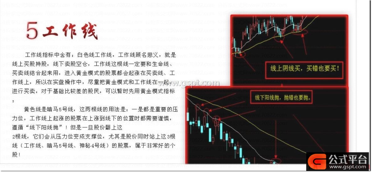 2.工作线:白色线工作线,就是线上买股持股,线下卖股空仓,简单实用。