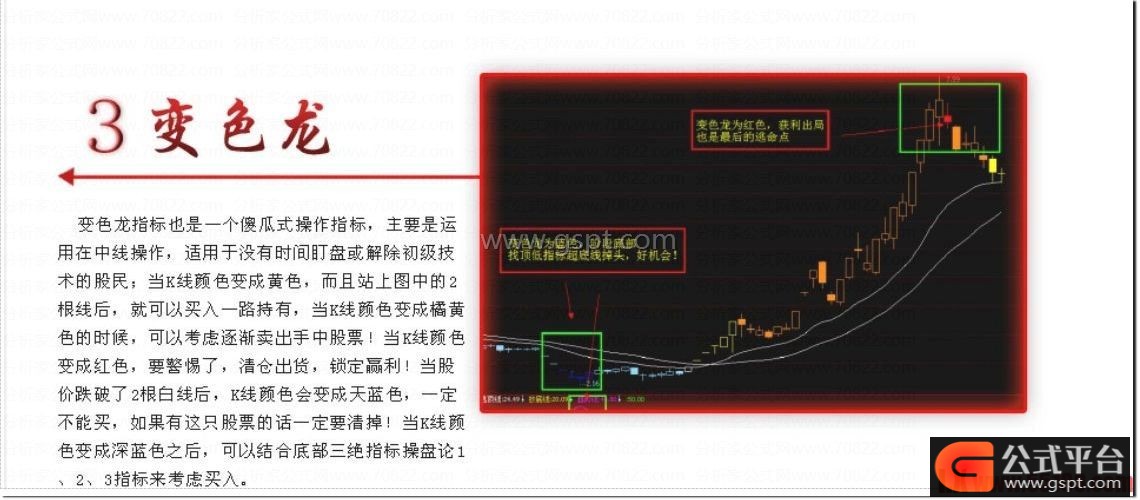 7.变色龙:变色龙指标也是一个傻瓜式操作指标,主要是运用在中线操作,适用于没有时间盯盘或解除初级技术的股民;根据K线不同颜色的变化来判断当前的股票行情。