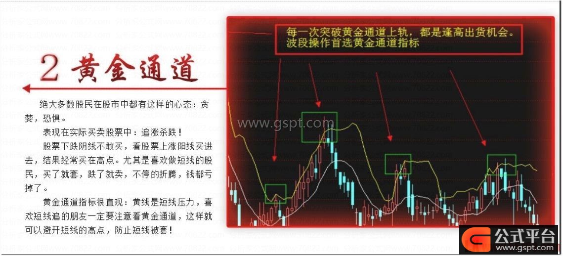 6.黄金通道:最直观短线压力与支撑,这个指标帮助您不会买在短线的高点,可以作为短线的买卖参考!