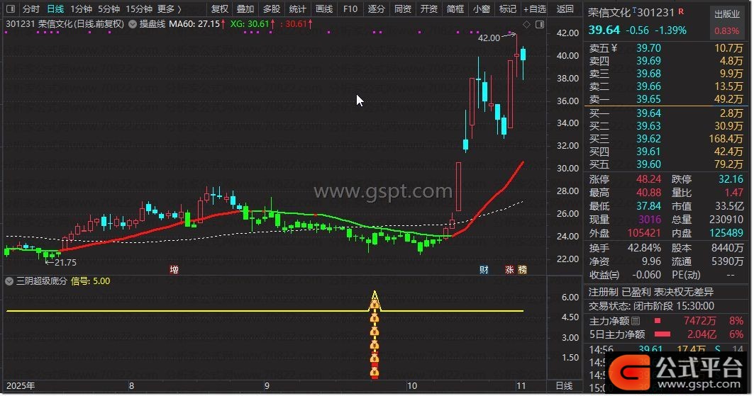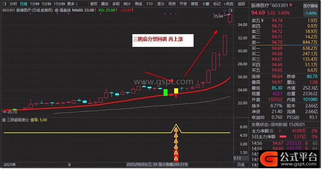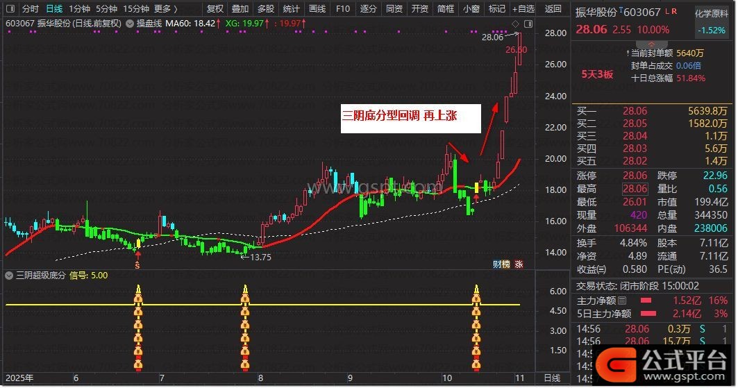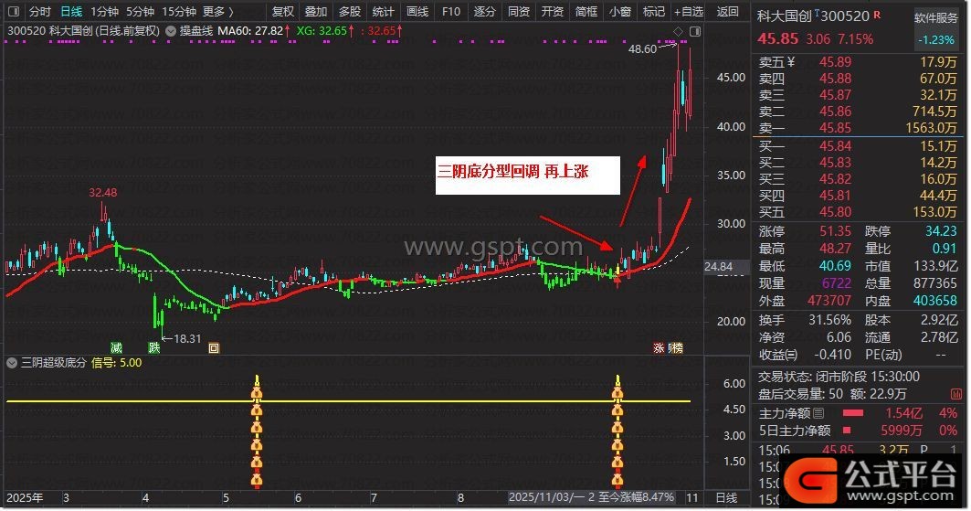 通达信三阴超级底分型结构识别在下跌趋势中形成的特殊底部反转形态