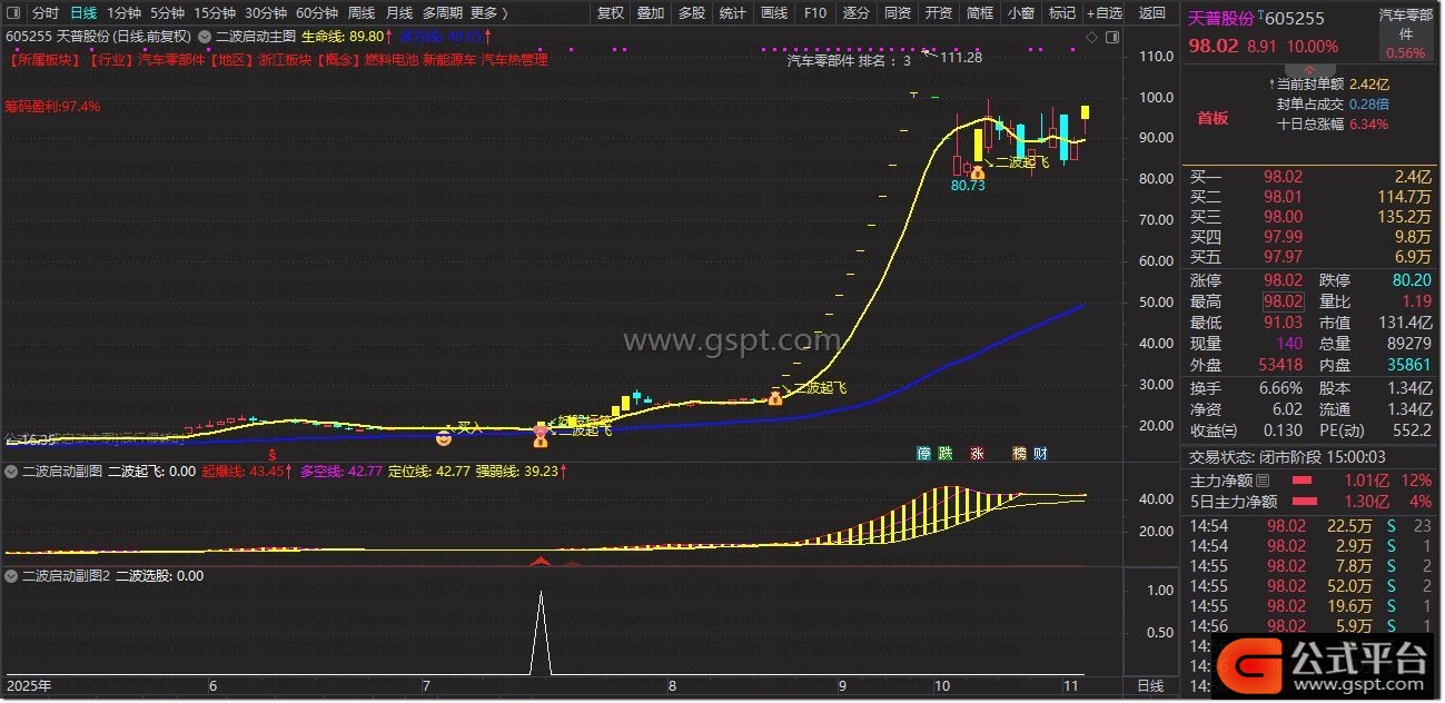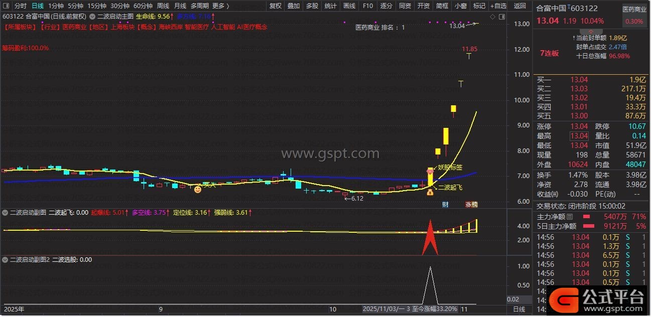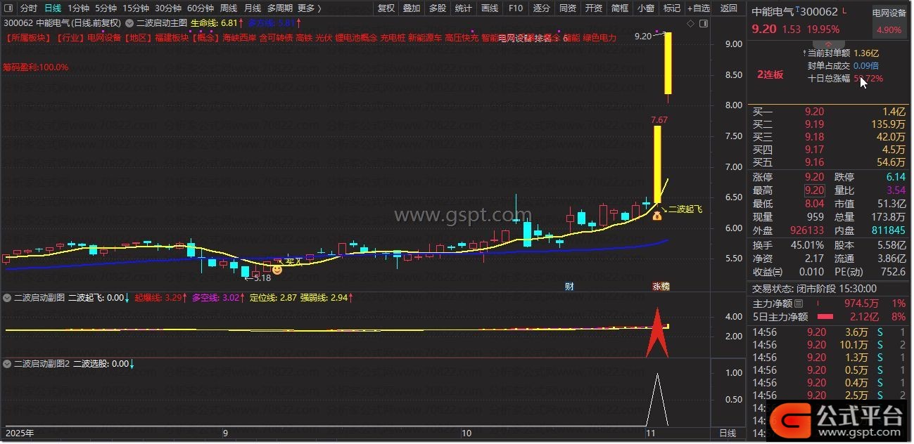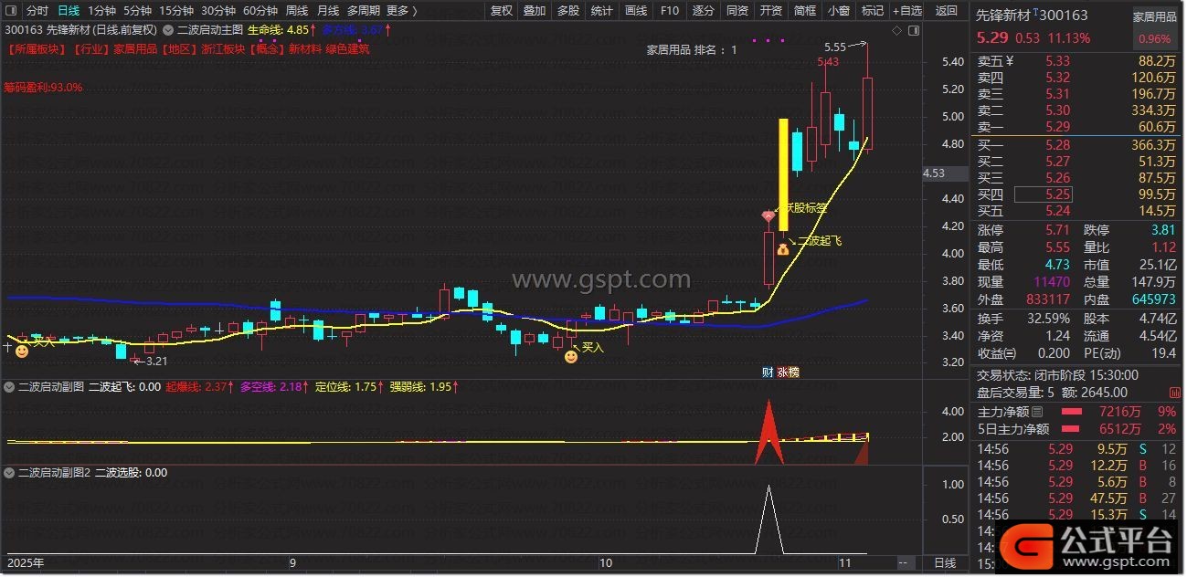 〖二波启动〗主图副图+选股指标,二波起飞策略 大单买入