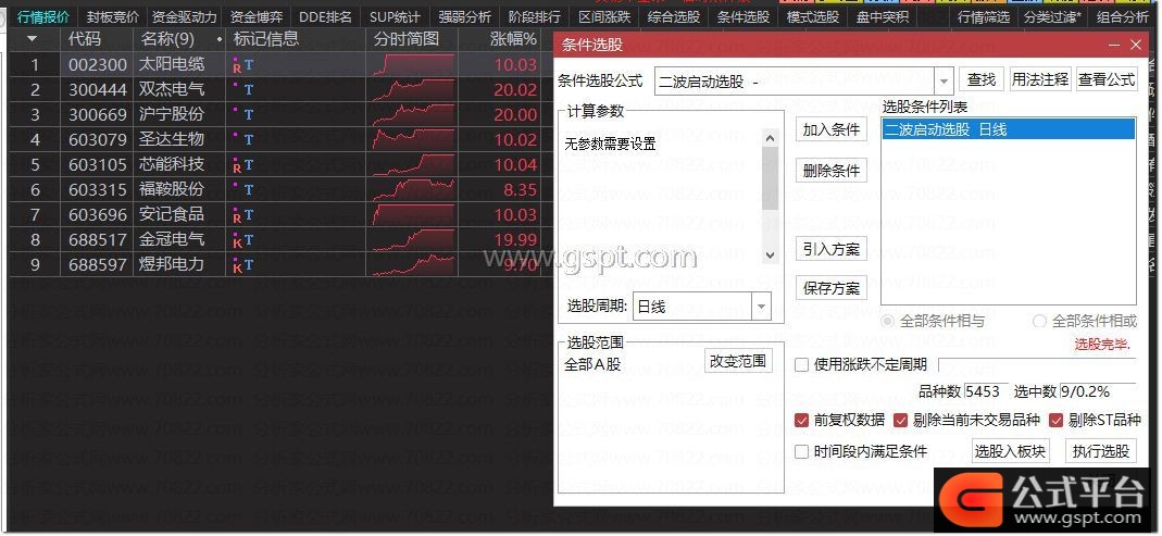 选股指标为短线选股工具,基于中小盘+低价+资金介入+趋势反转四重逻辑筛选二波上涨标的,核心锁定资金承接有力、趋势明确转强的高弹性个股,是副图指标的选股精简版。适用标的需满足流通盘<8亿股、收盘价<45元、非停牌状态,适配震荡市弱牛市短线行情,回避大盘单边暴跌阶段。