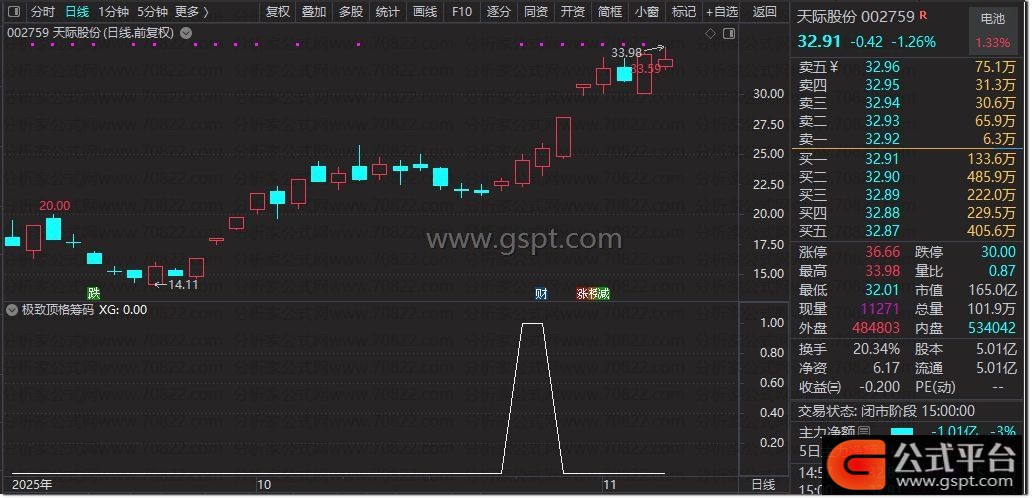 风险提示:顶格筹码峰出现不一定上涨,与股价位置和市场风向密切相关。