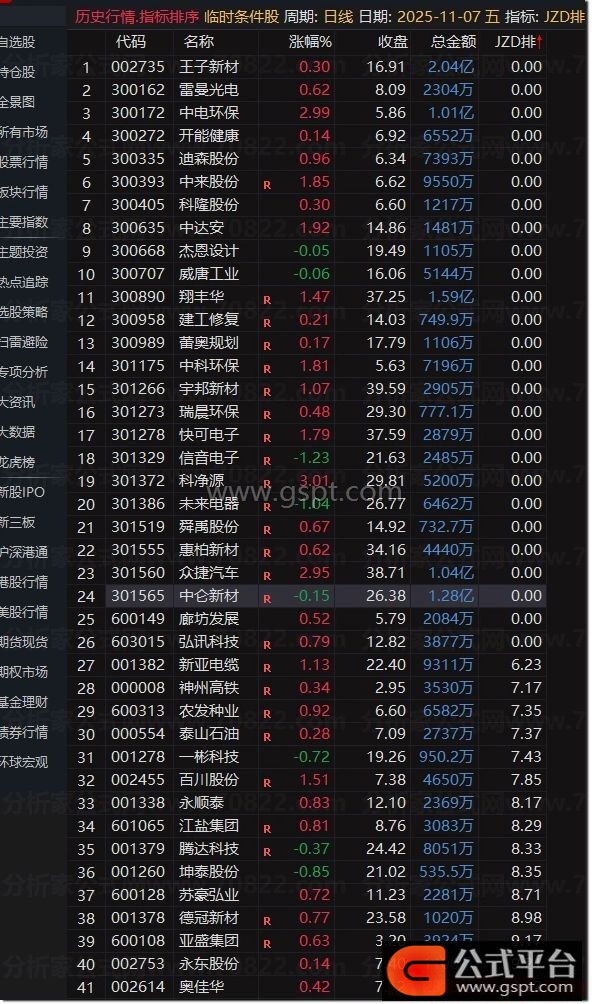 如果对全部A股排序,是没多大意义的。因为JZD排等于0的票票太多,没意义。