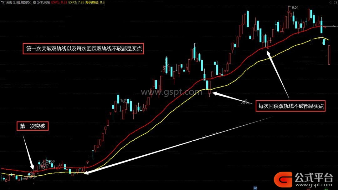 2、首次突破双轨线或每次回踩不破,视为较佳买点。这常预示股价向上动能,提示趋势转变机会。