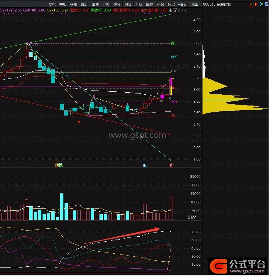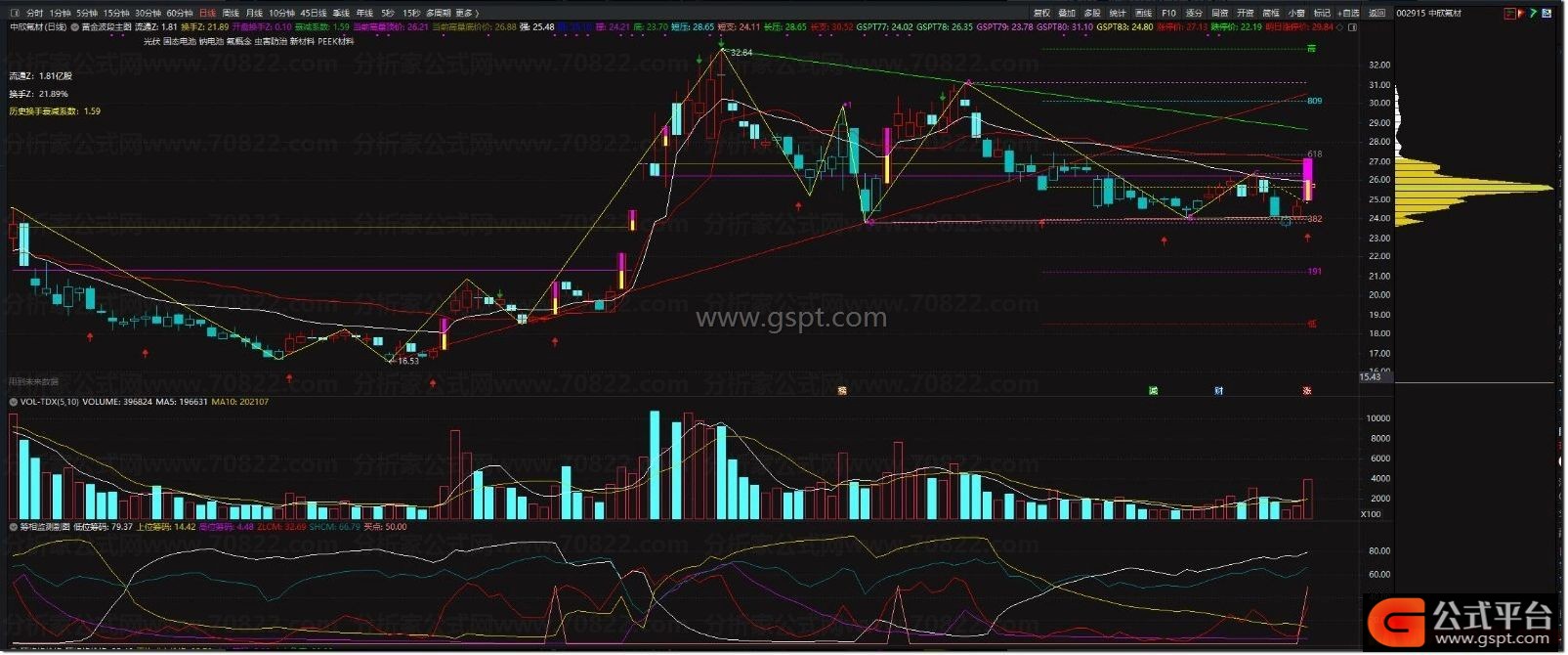 本文下载附件里没有主图,没有选股,只有一个副图:筹相监测副图,如上图。