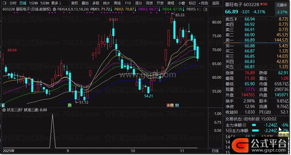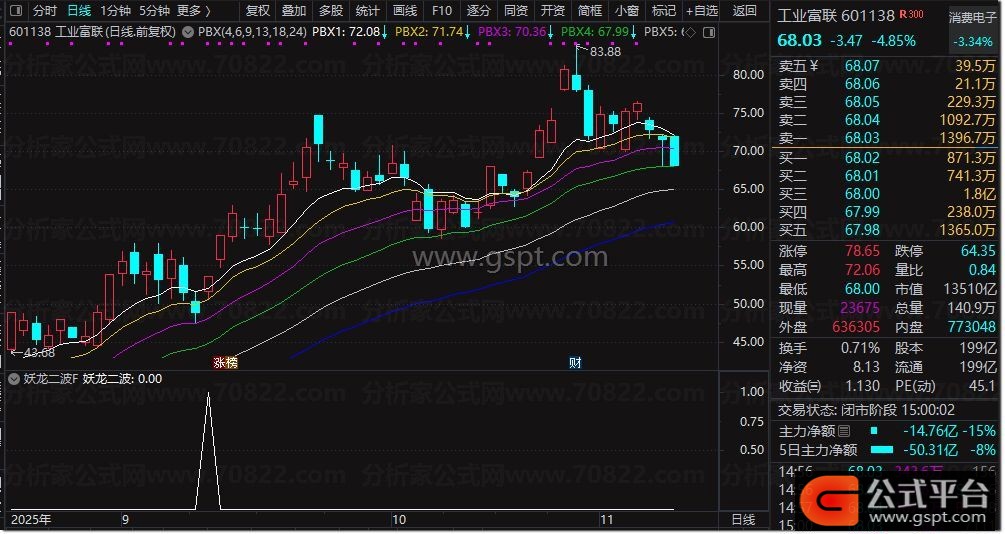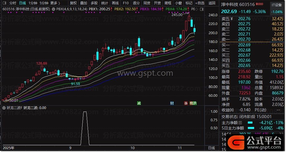 龙头妖股经过一波主升浪拉升后,涨幅巨大,主力资金无法在第一波主升浪的拉升中将手中,所有的筹码,全部出货完成,通常会进行短期的调整洗盘,洗盘结束后,结合市场热点风口题财,择机进行二波拉升出货。