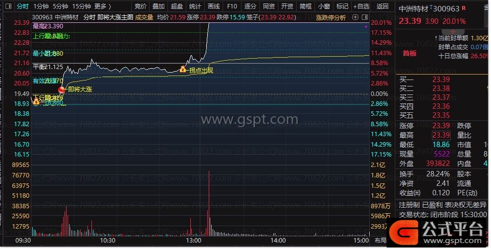 3. 抓信号:当分时图出现黄色“←即将大涨”文字+对应图标,或“←拐点出现”信号时,结合量能确认,可作为短线买入参考;