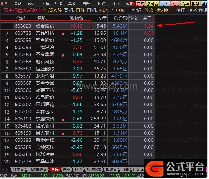 公式适配沪主板、深主板、创业板等不同市场涨跌幅规则,自动区分标的类型,剔除688/301/300开头特殊标的干扰,聚焦高性价比的一进二机会。