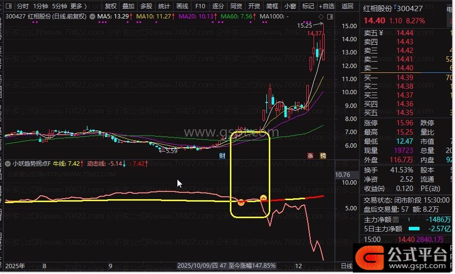 3、作为一款无未来函数的实战型技术指标,小妖趋势拐点确保信号真实可靠,杜绝信号漂移问题。无论您使用通达信手机版还是电脑版,均可无缝加载使用,是捕捉主升启动拐点的理想工具。