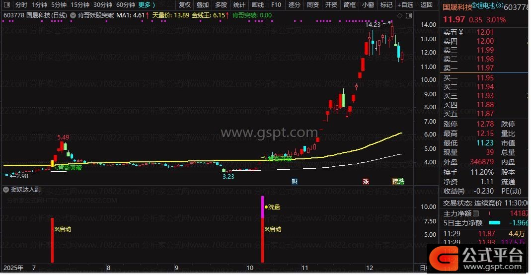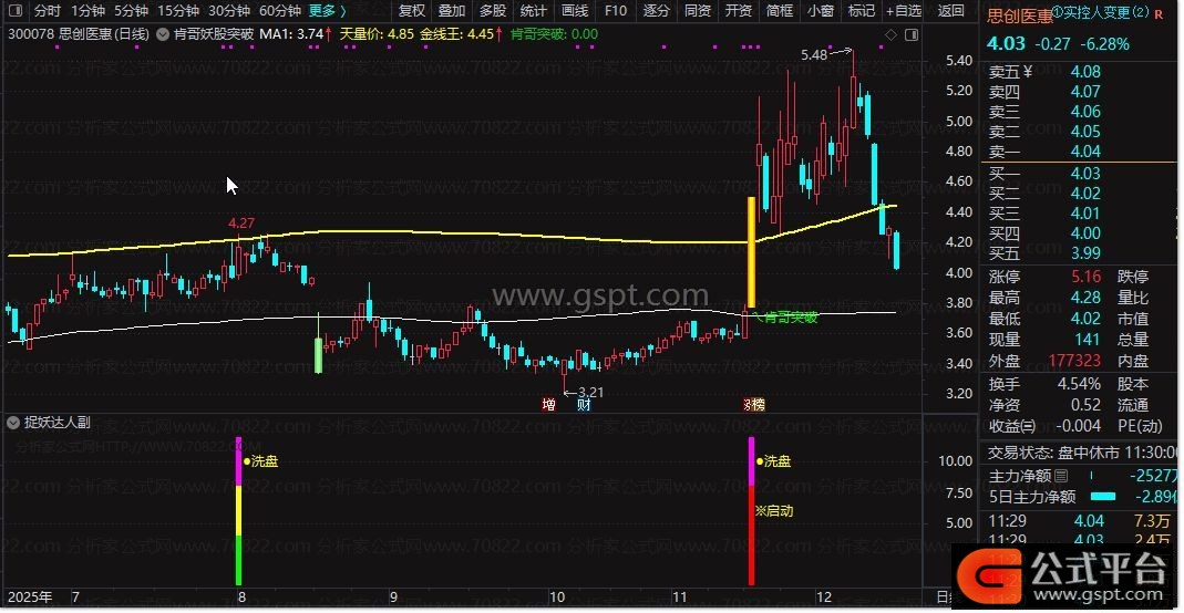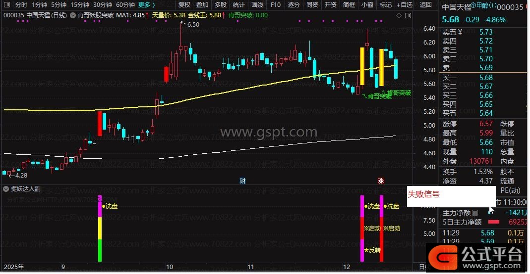 gspt4:=CROSS(C,gspt3) AND REF(C,1)*1.05-C< 0.008 AND C>O*0.5;