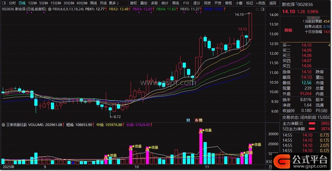 DRAWTEXT(gspt7 AND C>REF(C,1),VOL*0.95,' ★倍量'),COLOR00FFFF;