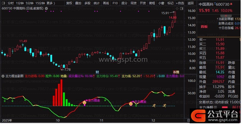 主力进场:IF(gspt5>REF(gspt5,1),gspt5,0),COLOR0000FF,NODRAW;
