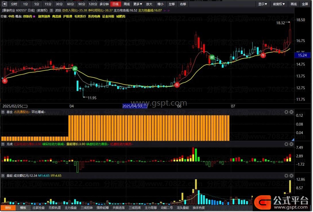 首先展示股多多仿写版本的指标效果图,可以与上图进行对比查看