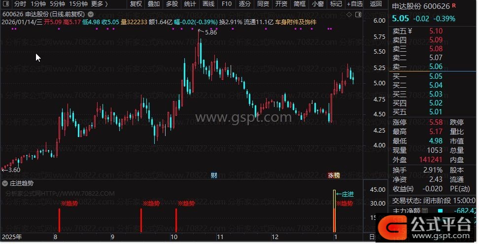 3. 信号使用要点:核心关注跟庄信号,该信号出现频率较低,对应5日出局策略的成功率较高。建仓后需结合通达信盘面实时情况设置强制止损点与止盈点,既能保护已有利润,也能有效减少潜在亏损,提升跟庄交易安全性。