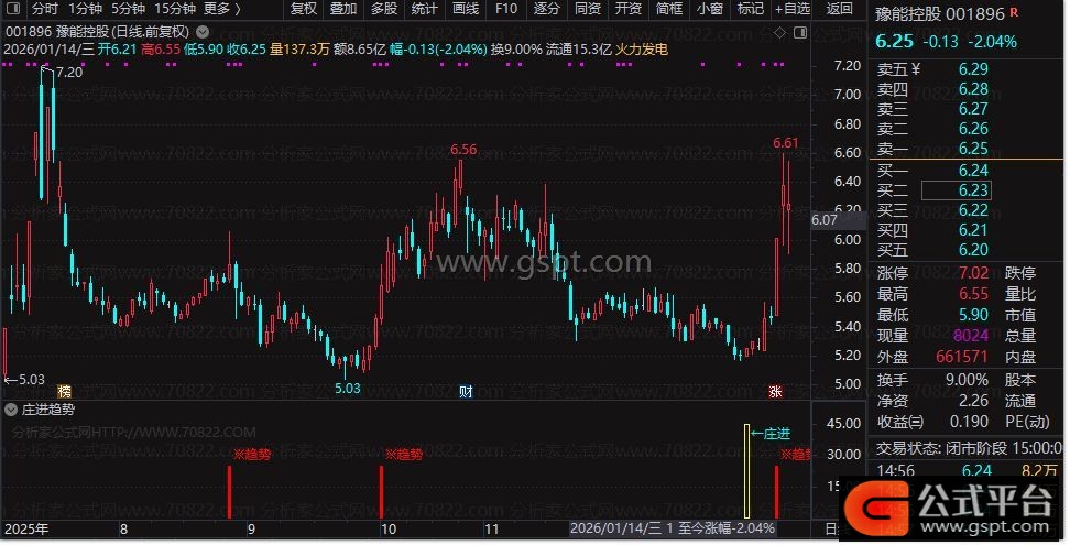庄进趋势指标是通达信专用指标,包含1个副图指标、1个选股指标,专注波段趋势研判,支持跟庄入场、趋势加仓策略,提供完整指标源码,适配手机端与电脑端同步使用,所有信号仅供投资参考。
