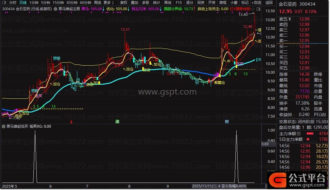 gspt53:=IF(12,LLV(L,12)>REF(L,12),1);