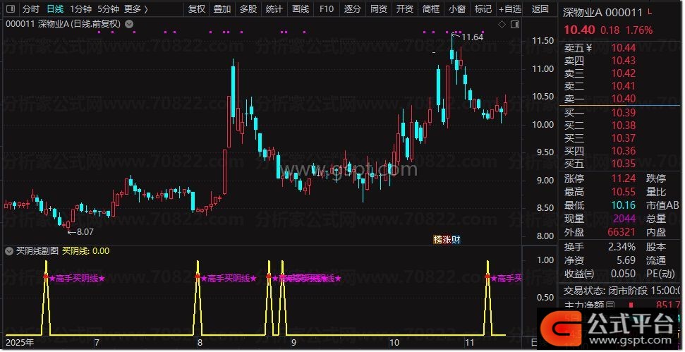 DRAWTEXT(买阴线,0.75,' ★高手买阴线★'),COLORFF00FF;